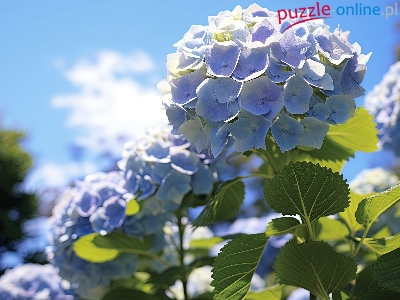 Niebo, Niebieskie, Kwiaty, Hortensje, Grafika, Liście