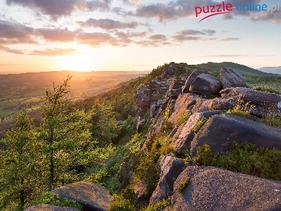 Hrabstwo Staffordshire, Wzgórze, Wschód słońca, Grzbiet górski The Roaches, Anglia, Park Narodowy Peak District, Skały
