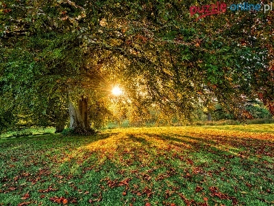 Hrabstwo Tyrone, Jesień, Promienie słońca, Dungannon, Drzewa, Irlandia Północna, Parkanaur Forest Park, Liście