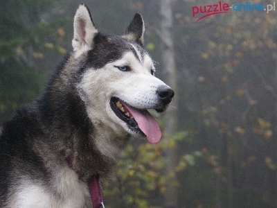 Puzzle Czerwona, Husky, Smycz