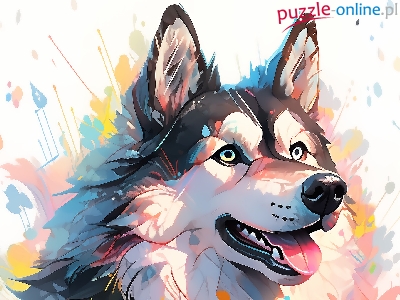 Puzzle Siberian husky, Grafika, Pies, Farba
