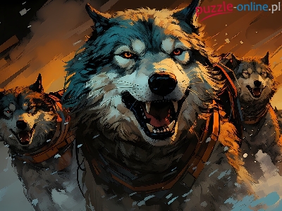 Puzzle Siberian husky, Grafika, Psy, Zaprzęg