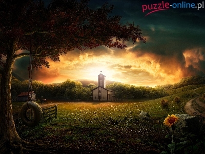 Puzzle Huśtawka, Drewniany, Kościół, Niebo