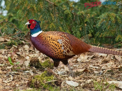 Puzzle Bażant, Kolorowy, Ptak, Iglak
