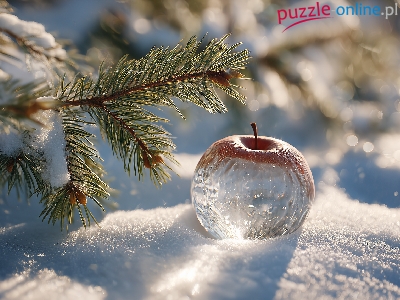 Zima, Jabłko, Szklane, Iglak, Grafika AI, Śnieg