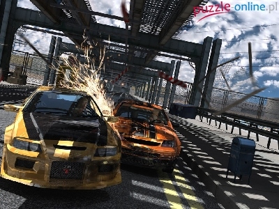 Wyścig, Gruchot most, iskry, ulica Flat Out, wypadek Flat Out, Wyścig