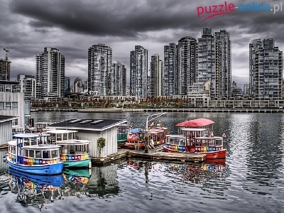 Granvill Island, Łodzie, Kanada, Rzeka, Wieżowce, Vancouver