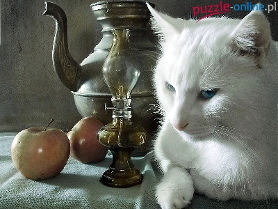 Jabłko, Lampa, Kot, Biały, Dzbanek