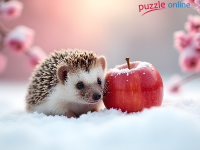 Jeż, Jabłko, Czerwone, Grafika, Śnieg