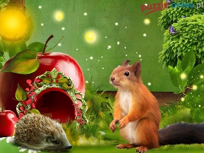 Jabłko, Wiewiórka, Jeżyk, Grafika