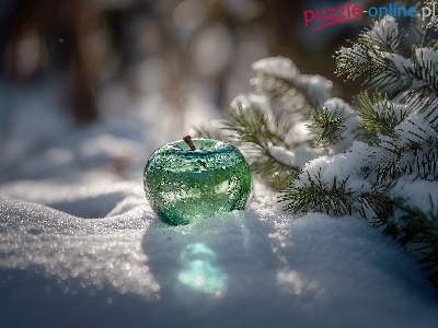 Śnieg, Szklane, Zielone, Jabłko, Grafika AI, Gałązki
