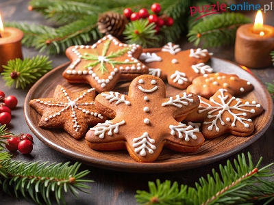 Świeczki, Pierniczki, Gałązki, Jagody, Świerkowe, Talerz, Czerwone