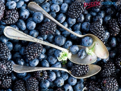 Jagody, Kwiaty, Trzy, Łyżeczki, Jeżyny