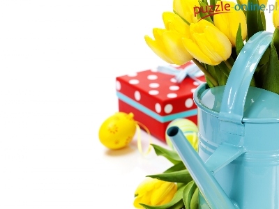 Puzzle Żółte, Wielkanoc, Jajka, Tulipany