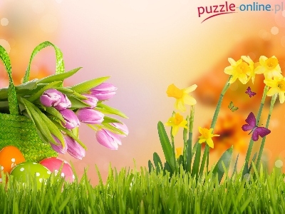 Puzzle Żonkile, Wielkanoc, Jajka, Tulipany