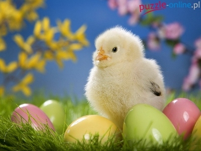 Puzzle Jajka, Trawa, Wielkanocne, Kurczaczek