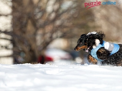 Puzzle Jamnik, Zima, Śnieg, Długowsłosy
