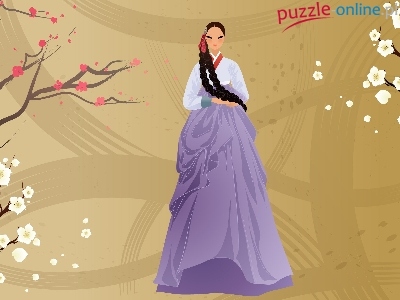 Puzzle Japonka, Drzewo, Kobieta, Suknia