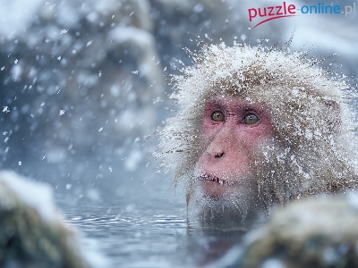 Małpa, Kąpiel, Makak japoński, Grafika AI, Zima