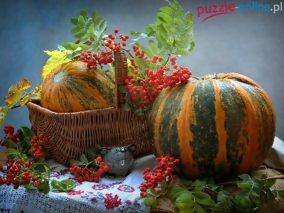 Jarzębina, Kompozycja, Dynie, Koszyk, Jesień