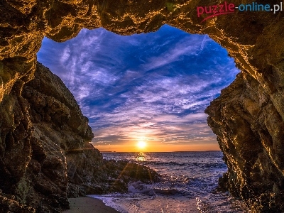 Puzzle Jaskinia, Morze, Skały, Wschód Słońca