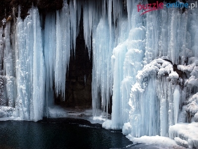 Puzzle Jaskinie, Zamarznięty, Wodospad, Zima