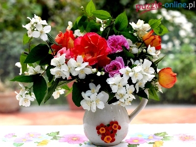 Puzzle Jaśmin, Kompozycja, Wazonik, Róże