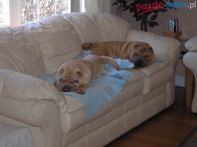 jasna, sofa, dwa, Shar Pei, skórzana