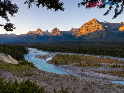 Las, Drzewa, Rzeka, Alberta, Park Narodowy Jasper, Canadian Rockies, Kanada, Góry