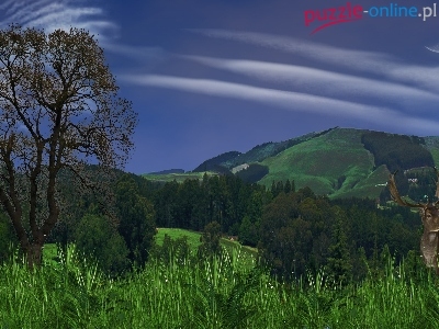Puzzle Jeleń, Wieczór, Polana, Góry