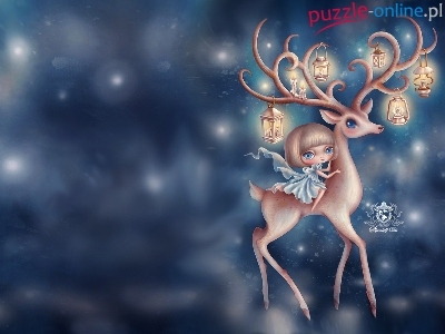 Puzzle Dziewczynka, Jelonek, Lampiony