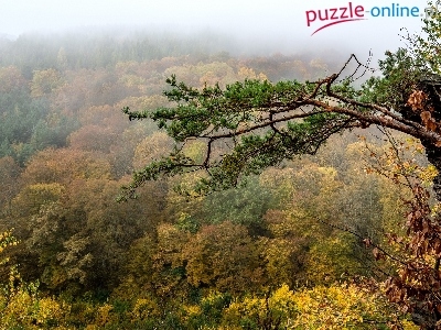 Jesień, Mgła, Las, Drzewa, Gałąź