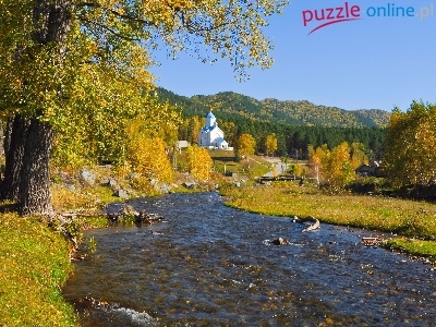Jesień, Las, Prawosławny, Rzeka, Drzewa, Kościół
