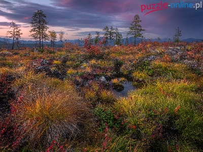 Trawa, Kołyma, Rosja, Jesień, Roślinność, Drzewa