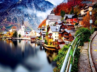 Jesień, Austria, Góry, Jezioro, Hallstatt