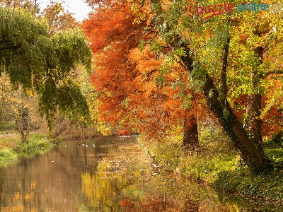 Ścieżka, Las, Kaczki, Jesień, Staw, Drzewa, Liście