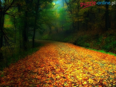 Puzzle Las, Jesień, Droga