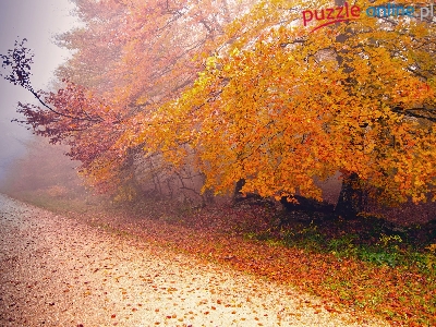 Puzzle Las, Jesień, Droga