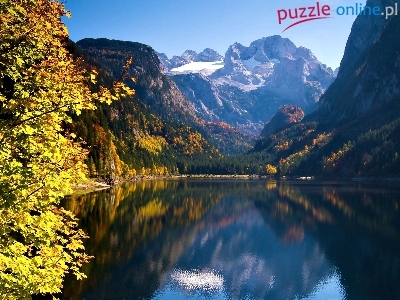 Jesień, Góry, Austria, Jezioro, Lasy, Gosau
