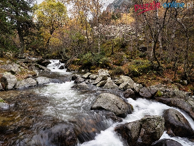 Drzewa, Góry, Mech, Jesień, Kamienie, Rzeka, Las