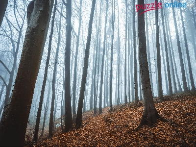 Liście, Mgła, Las, Jesień, Drzewa, Opadłe
