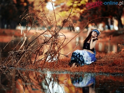 Sesja, Jesień, Gałęzie, Zdjęciowa, Suche, Modelka, Rzeka, Park