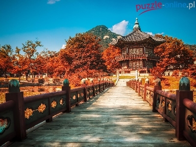 Most, Jesień, Korea, Góra, Seul, Pałac, Rzeka, Południowa