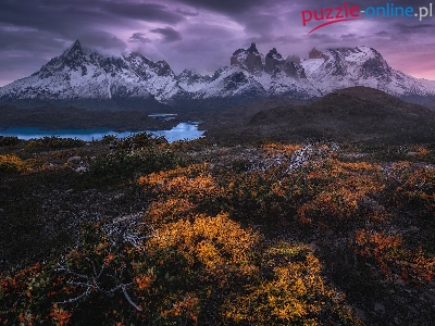 Jesień, Patagonia, Chile, Park Narodowy Torres del Paine, Roślinność, Góry