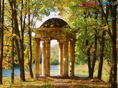 Jesień, Park, Rzeka, Budowla