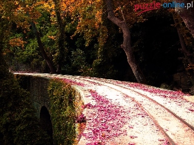 Puzzle Jesień, Las, Tory, Most