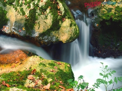 Puzzle Wodospad, Jesień, Skały