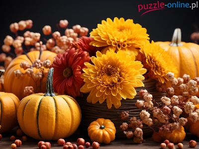 Dynie, Jesienna, Kwiaty, Grafika, Kompozycja