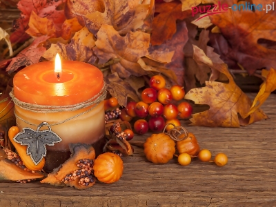 Puzzle Jesienna, Świeca, Liście, Kompozycja