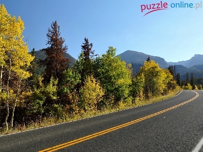 Puzzle Jesienne, Droga, Asfalt, Drzewa